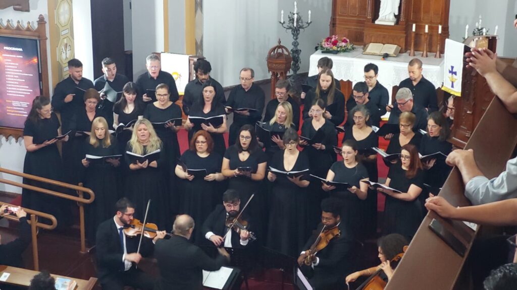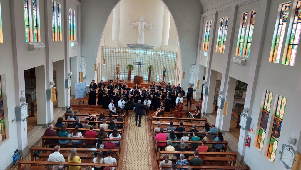Sob a regência do maestro João Paulo Sefrin, o repertório contemplou clássicos de Bach, Mozart, Vivaldi, Marco Frisina e Gyorgy Deak-Bardo. As solistas Lúcia Passos e Carine Fick (sopranos) e Mayara Faria (mezzo-soprano) foram destaque na apresentação, que contou também com o acompanhamento da pianista Rafaela Uchôa.